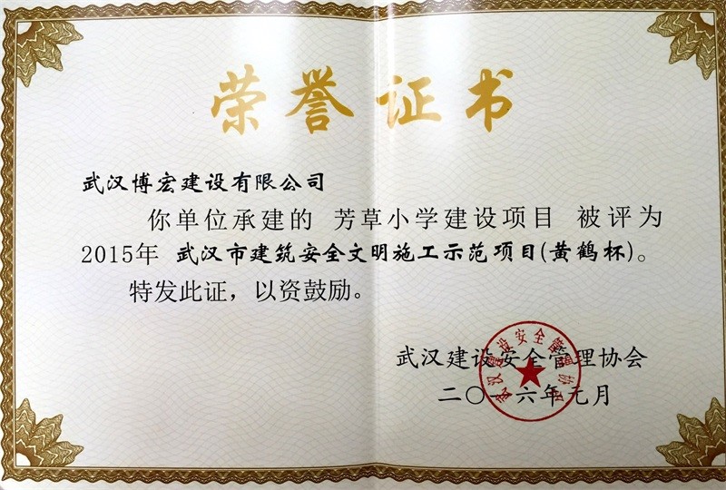 芳草小學(xué)-1#教學(xué)樓結(jié)構(gòu)優(yōu)質(zhì)工程證書(shū)