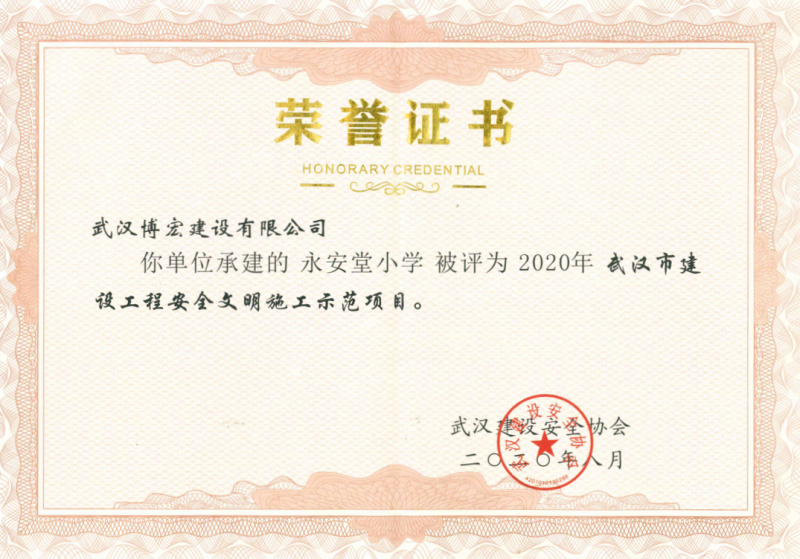 2020年上半年武漢市建設(shè)工程安全文明施工示范項目(永安堂小學)