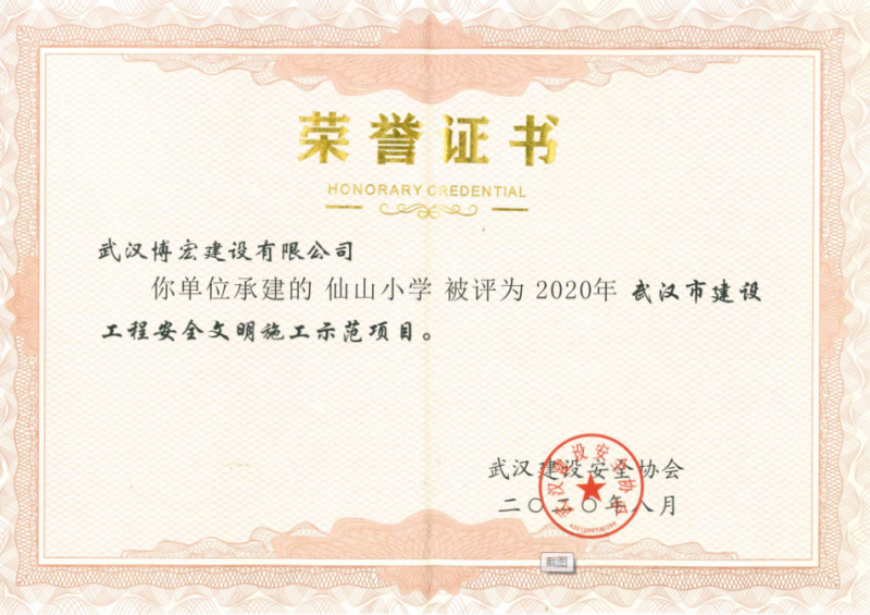 2020年上半年武漢市建設(shè)工程安全文明施工示范項目(仙山小學)