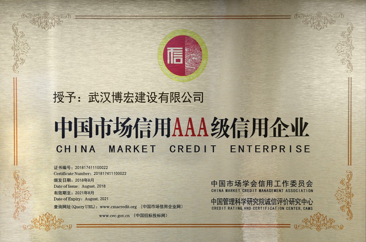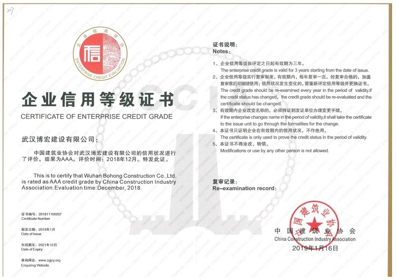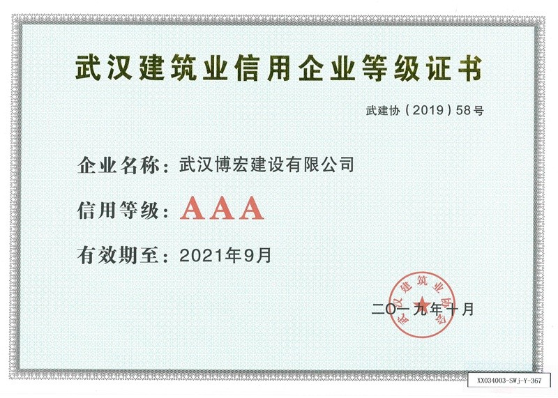 武漢建筑業(yè)信用企業(yè)等級(jí)證書(shū)